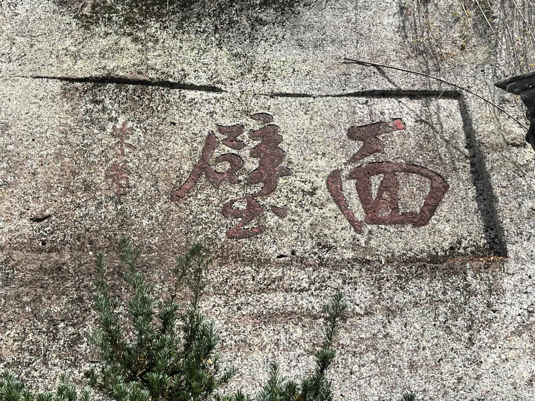 正对着大佛寺门前的照壁,照壁上书“南朝古剎”四个行书,而落款是“集王羲之书”。