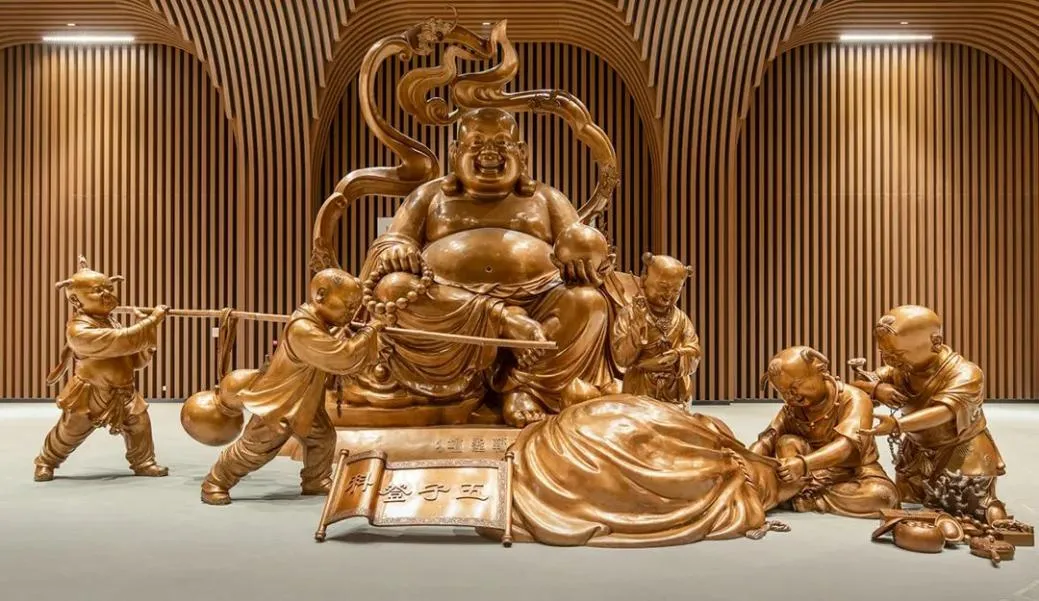 时光甬道的后面上了台阶就是兜率天宫,形似一棵“龙华树”,天宫的正中是浮雕佛像。