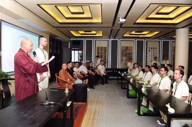慧明法师在开幕词中热烈欢迎国际学生的到来,并引用西方科学家爱因斯坦对佛法的赞叹,鼓励中西方青年理性的学佛,通过佛法的智慧来引导生活。木鱼计划发起人和项目总指导依法博士回顾了一路走来的15届禅学营,告诉大家这个禅学营得名于星云大师,饱含大师对国际青年的鼓励和期待。同时嘱咐学员在项目学习中一定要怀着“空杯心态”,学习和体验东方智慧和中国传统文化,丰富自己的国际视野甚至人生。
