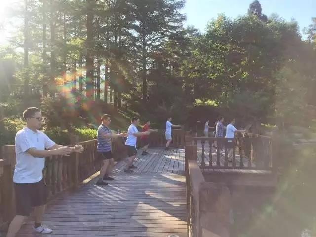 2016年8月5日,中共浙江省委党校的内家拳学员趁着假期第二次与夏宝峰掌门同行,前往四明山,文化交流与武术学习相结合。在风景秀丽的四明山里心平气和,站个桩,打套拳,哪一个惬意了得!