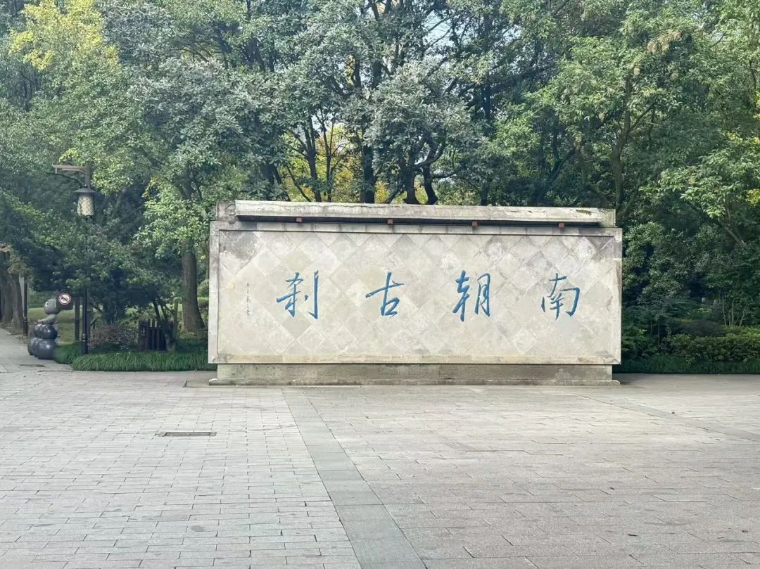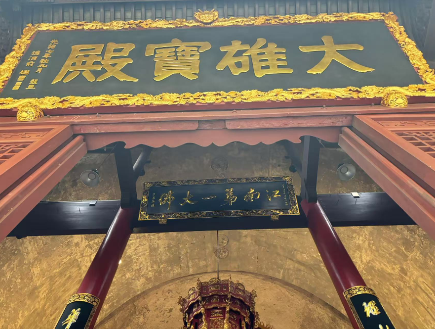 正对着大佛寺门前的照壁,照壁上书“南朝古剎”四个行书,而落款是“集王羲之书”。